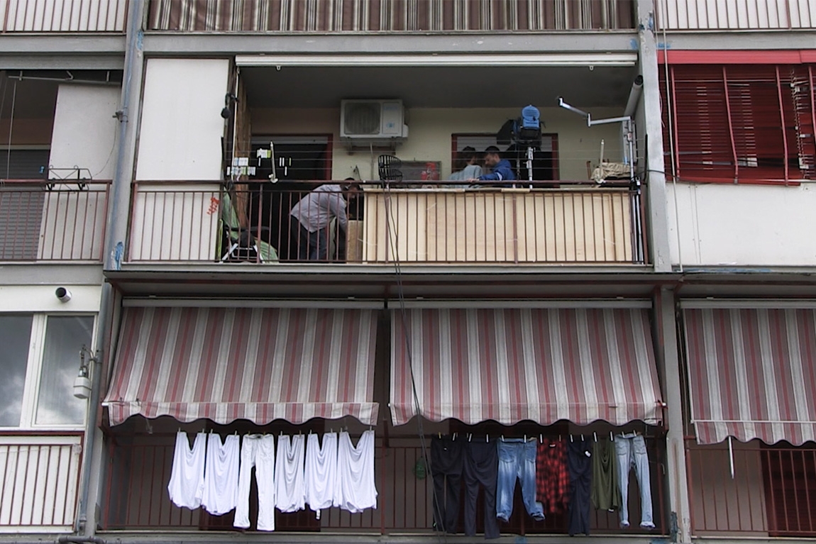 Il Parco Merola è una piccola grande realtà abitata da oltre cento famiglie campane, confinate nella periferia di Napoli dopo il disastroso terremoto dell’Irpinia del 1980; una realtà isolata in cui la dialettica fra essere ed apparire si respira più che in altri luoghi del quartiere di Ponticelli. Da qualche anno a questa parte, il lotto è divenuto infatti oggetto di visite guidate fra i murales che colorano le pareti degli edifici, e location preferita da produzioni cinematografiche locali e non (Gomorra – La Serie, Sirene, videoclip musicali). Tuttavia, nonostante l’ingresso del mondo fuori, il Parco Merola continua a vivere la sua realtà con naturalezza e disinvoltura grazie alle sue abitudini ed i suoi racconti, dove il cinema non serve perché “la nostra vita è già un film” come dice Mariella, che il parco lo conosce e lo vive da oltre vent’anni.