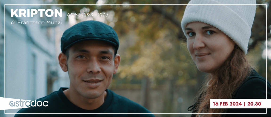 Nuovo appuntamento con Astradoc - Viaggio nel cinema del reale con il regista Francesco Munzi, che presenterà al pubblico Kripton (Italia 2023 - 107’), in nomination ai Nastri d'Argento e nella shortlist dei Premi David di Donatello. Il film è una produzione Cinemaundici e Rai Cinema. Presentato in anteprima mondiale alla Festa del Cinema di Roma 2023, poi distribuito nelle sale da ZaLab.