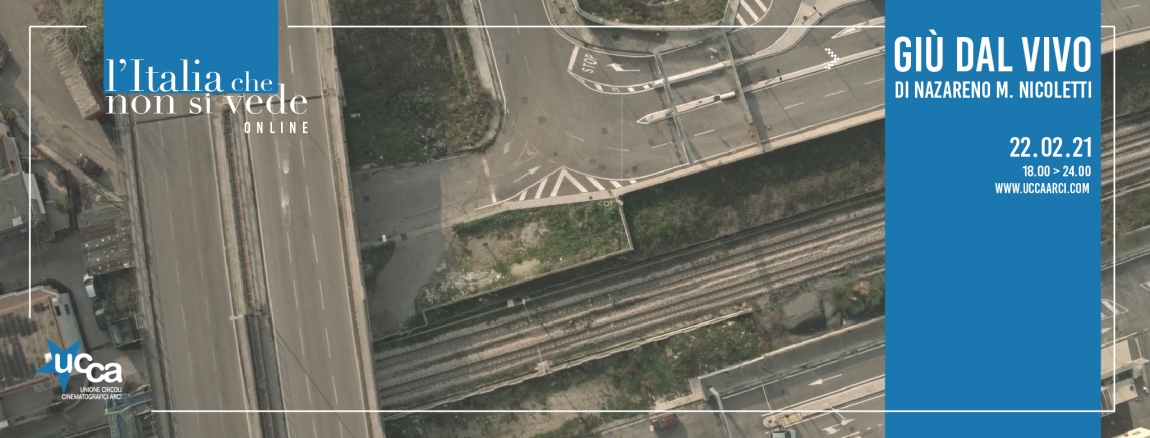 Lunedì 22 febbraio 2021 nell'ambito della rassegna "L'Italia che non si vede", curata da UCCA, sarà proiettato in streaming gratuito dalle 18 alle 24 il documentario "Giù dal vivo" di Nazareno M. Nicoletti (Italia, 2019 - 74 '), che Arci Movie ha prodotto in associazione con Parallelo 41 Produzioni, con la produzione curata da Antonio Borrelli con Antonella Di Nocera, con il contributo della Regione Campania e in collaborazione con la Film Commission Regione Campania.