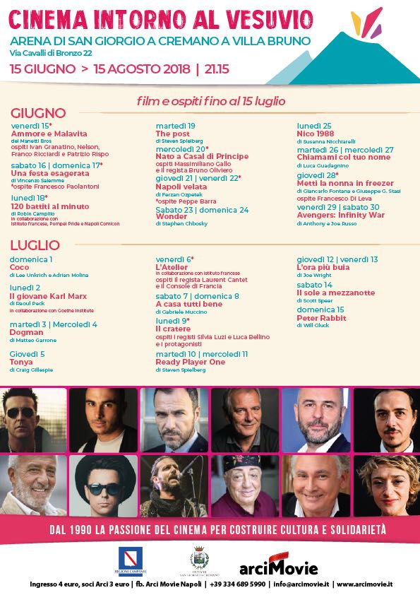 L'inaugurazione della XXV edizione di Cinema intorno al Vesuvio si terrà Venerdì 15 Giugno 2018 alle ore 21.15 a Villa Bruno - via Cavalli di Bronzo, 22.